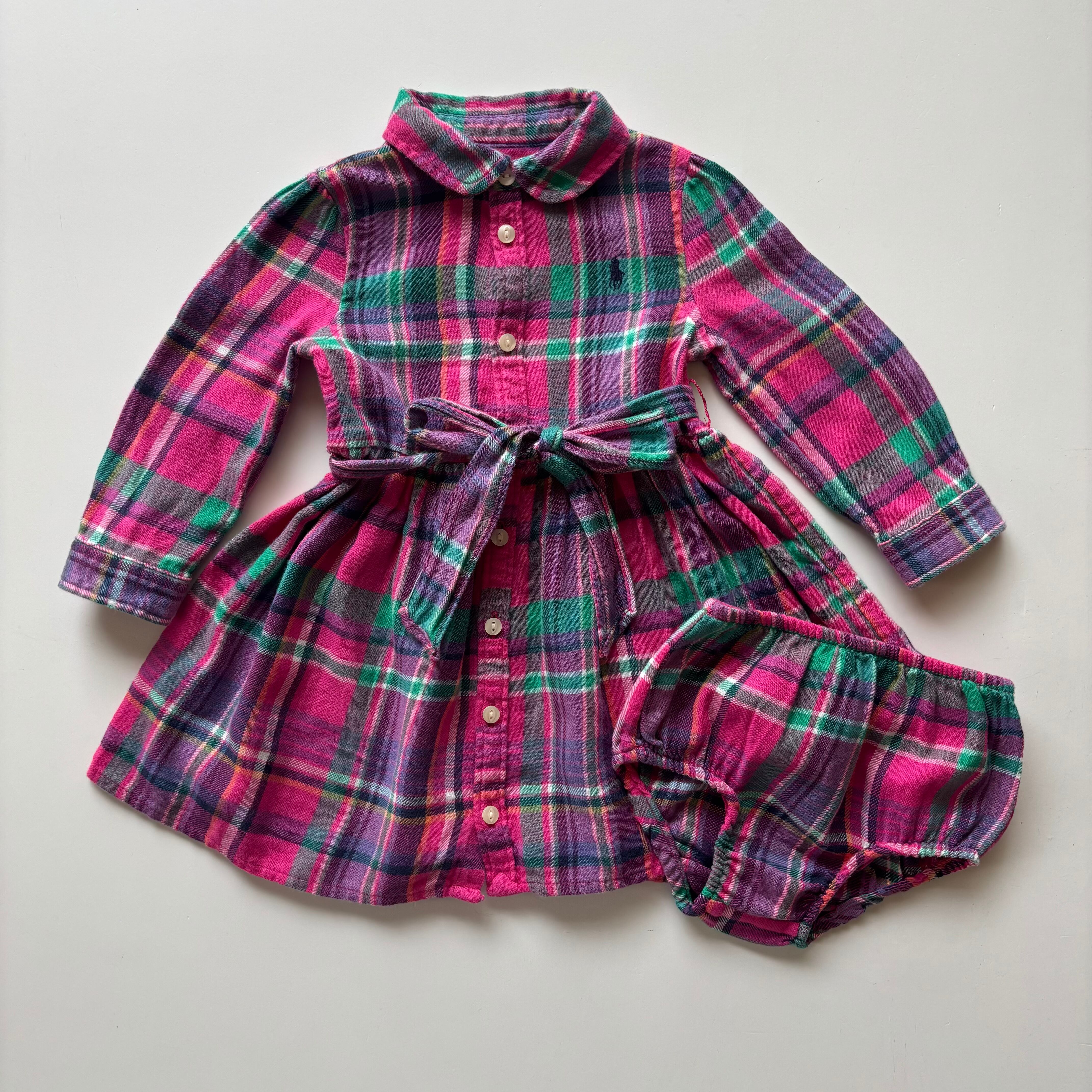 【KIDS 80】Ralph Lauren インナーパンツ付き チェック柄 シャツ ワンピース